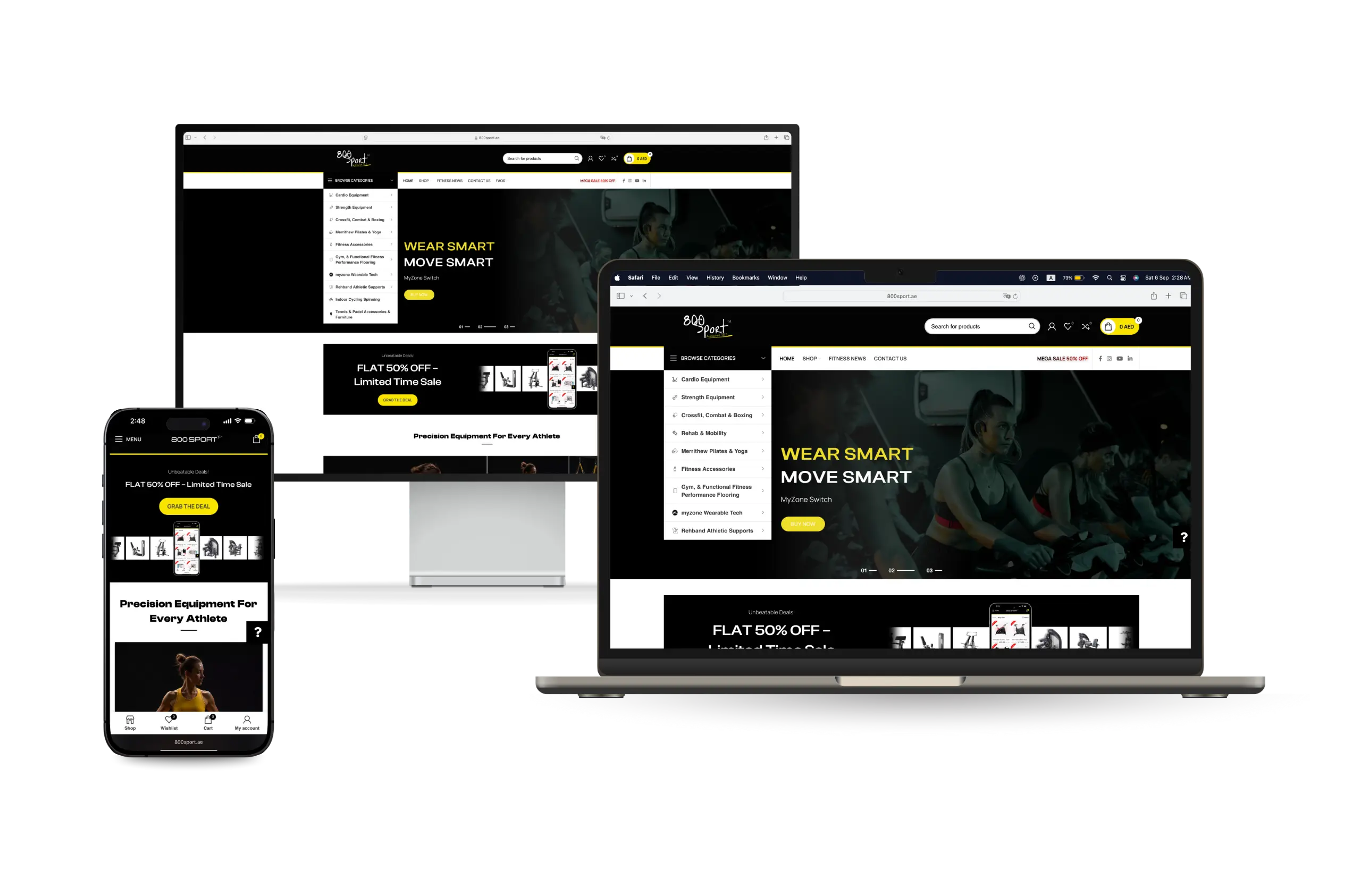 800Sport is the UAE’s leading fitness and sports equipment supplier, with over two decades of experience serving gyms, hospitality, government, and corporate sectors. Known for offering premium international brands and full-service gym solutions, 800Sport required a modern eCommerce platform to scale online sales and meet the growing demand from both B2B and B2C customers across the UAE and GCC.
