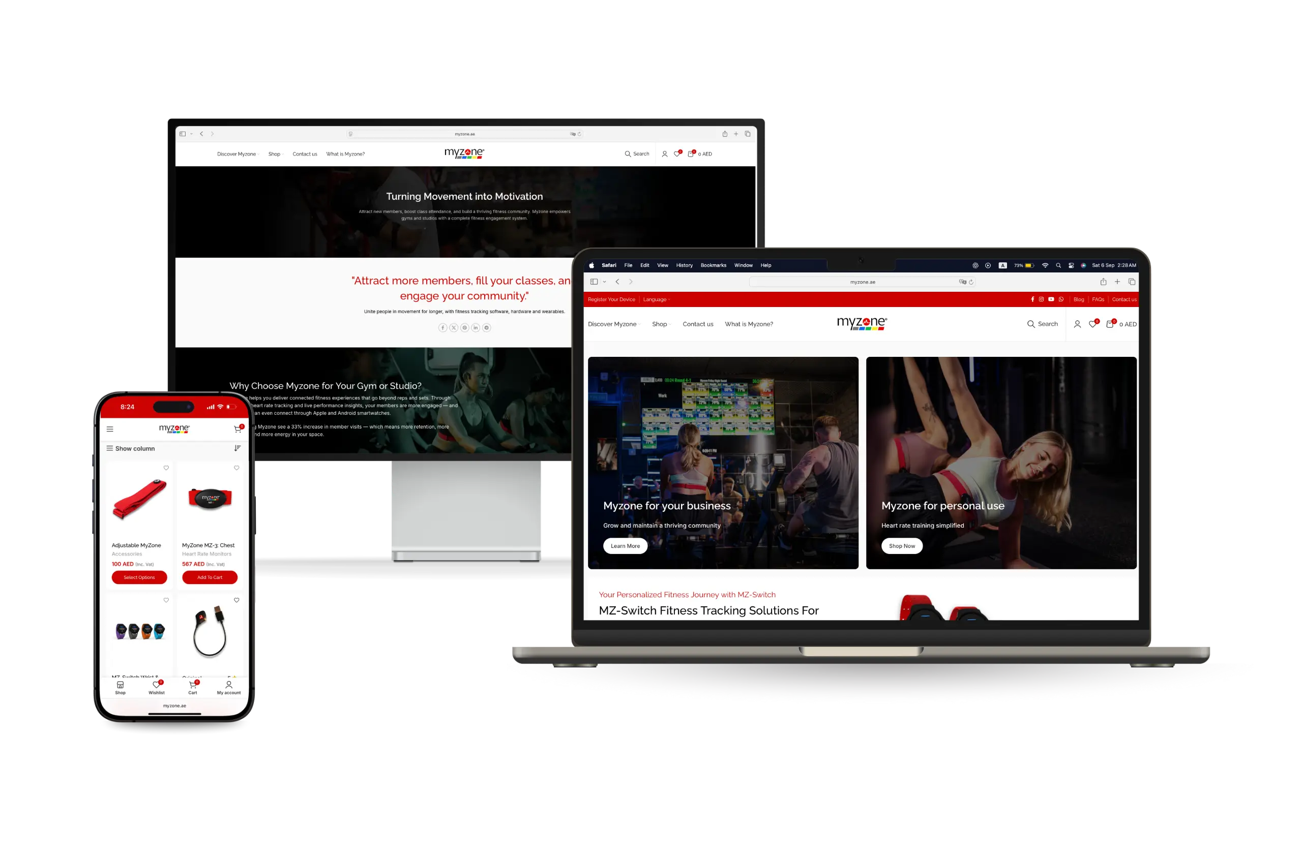 Delivered a responsive, modern WooCommerce store on WordPress tailored to Myzone’s branding and product catalog.